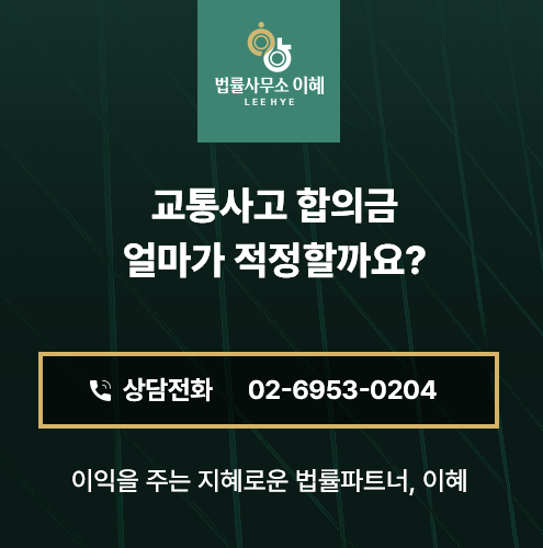 ☎ 법률사무소 이혜는 교통사고 합의금 분쟁을 다수 처리한 경험을 바탕으로 과실비율 검토부터 손해액 산정, 보험사 협상, 소송까지 단계별로 체계적인 법률 조력을 제공하고 있습니다.