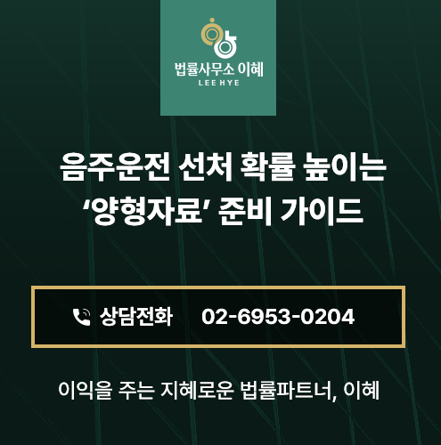 ☎ 법률사무소 이혜는 음주운전 사건을 다수 처리한 경험을 바탕으로, 경찰 조사 동행부터 양형 자료 수집, 재판 변론까지 사안에 맞는 최적의 전략으로 조력하고 있습니다.
